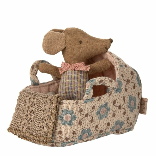 Emmenez votre bébé souris partout avec cet adorable couffin. Il offrira à votre petit compagnon un endroit douillet et sûr, pour dormir, lors de vos déplacements. Le bébé souris sera bien au chaud sous sa jolie couverture en tricot rose.