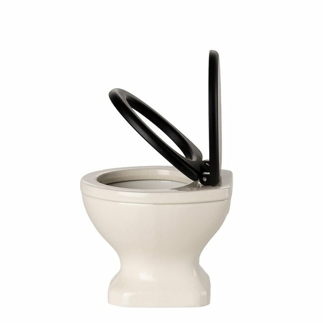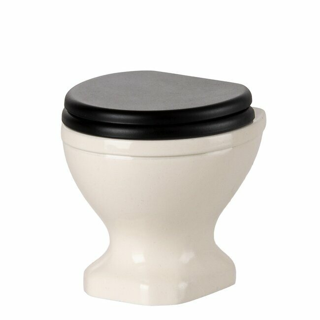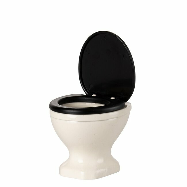 Le siège et le rabat noir s'ouvre et se ferme. Les dimensions de ces mini toilettes Maileg sont parfaitement adaptées aux petites souris Maileg.