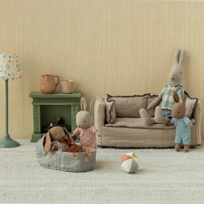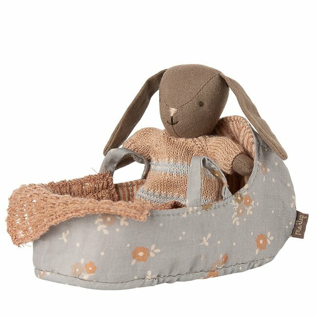 Ce mini couffin à poignées est idéal pour emporter et balader les petits personnages Maileg format Micro partout et s’inventer mille et une histoires avec eux. Bébé sera bien au chaud sous sa jolie couverture en tricot rose.