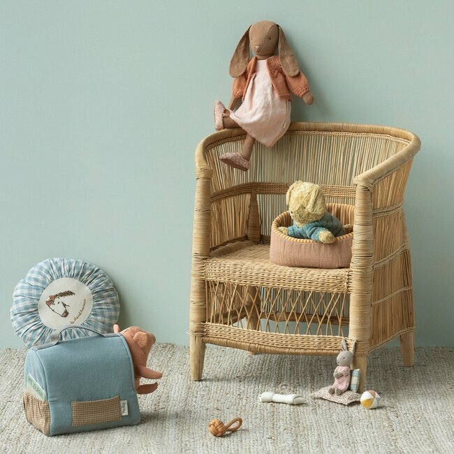 Cette jolie poupée Bunny Maileg fera aussi un adorable objet de décoration plein de charme et de poésie dans une chambre d’enfant.