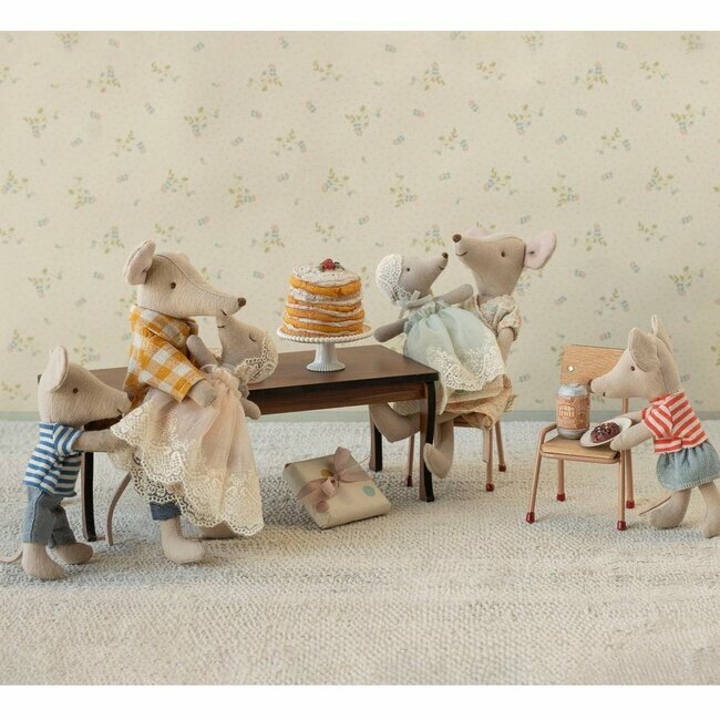 Rassemblez toute votre famille de souris et leurs amis autour de cette table en bois, et servez-leur un délicieux repas. Elle s'accorde parfaitement avec toutes les chaises de la taille des souris.