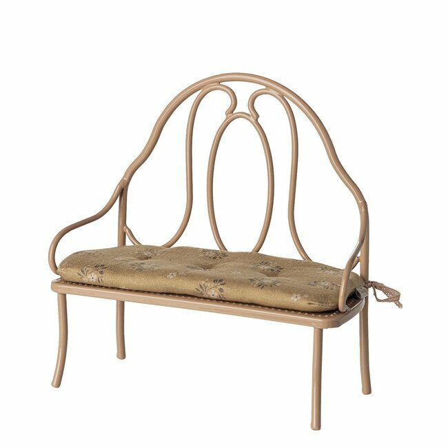 Ce joli banc vintage est livré avec un coussin moelleux pour assurer une assise confortable. Le banc convient parfaitement aux lapins et bunnies de taille 1 et 2 et s'associe à la table et chaises Mini Maileg.