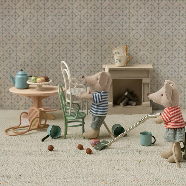 Une chaise vintage qui convient aux souris Petit(e)s soeur/frère et Grand(e)s soeur/frère. Elle s'intègre parfaitement aux différents environnements des souris et s'associe aux autres meubles et accessoires de taille Souris.