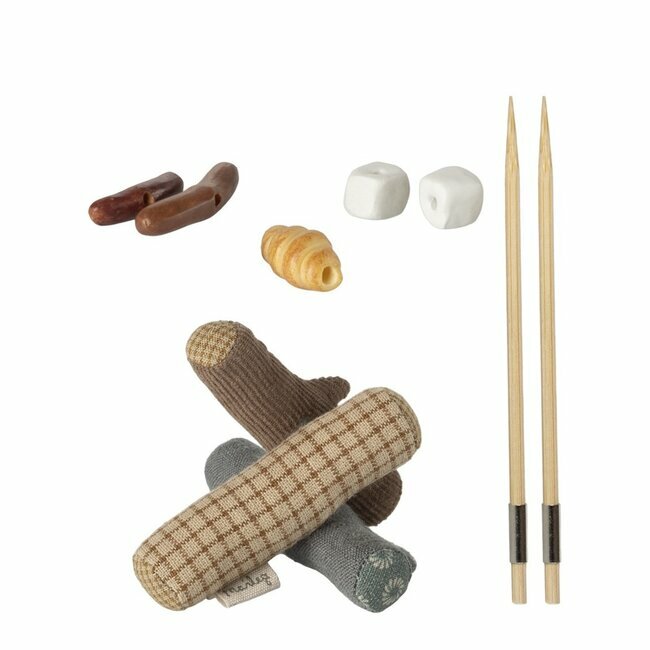 Dans la catégorie des adorables miniatures Maileg, voici un incroyable set pour organiser un véritable feu de camp lors des randonnées de vos petites souris Maileg. Elles vont adorer s'assoir autour du feu et préparer leur nourriture sur brochettes.