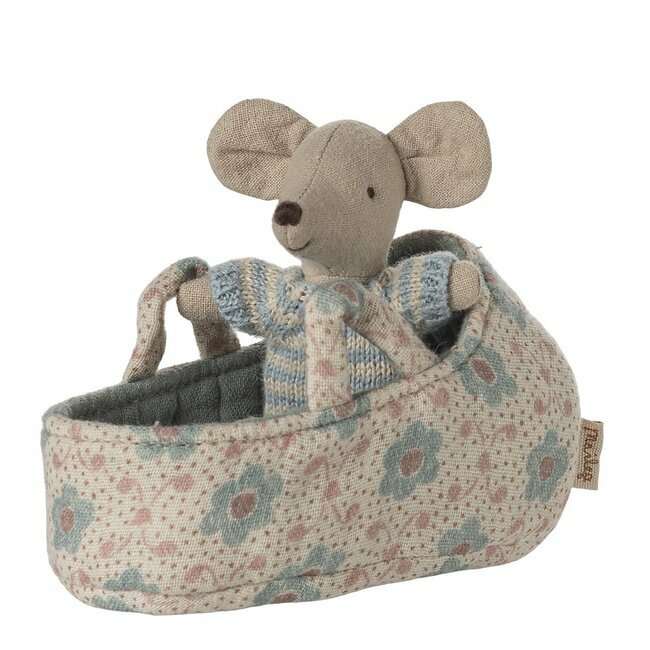 Les enfants seront totalement enchantés par le plus jeune de la famille des souris Maileg. Confortablement installé dans son charmant couffin pour bien dormir, ils pourront l’emporter partout avec eux et s’inventer mille et une histoires. Cet adorable ensemble mini souris et couffin fera aussi une adorable touche de décoration pleine de charme et de poésie dans leurs chambres.
