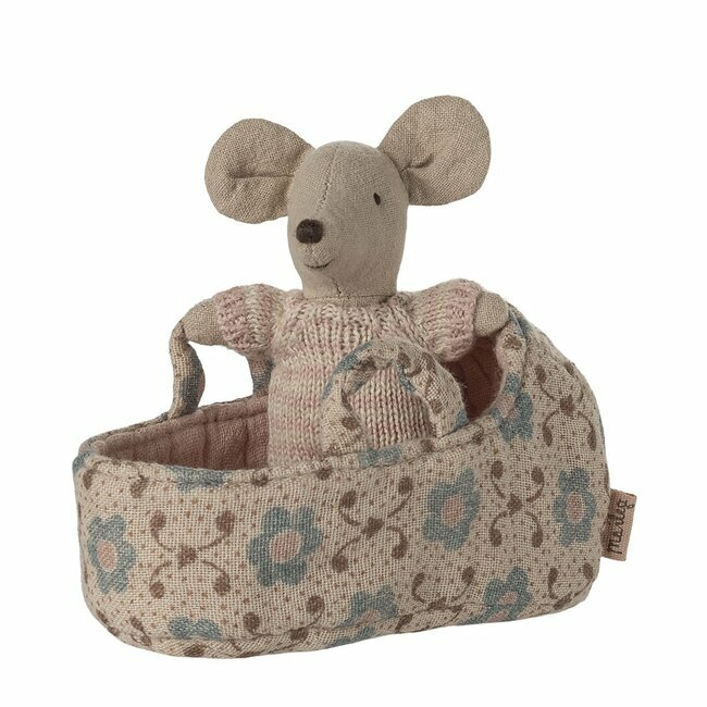 Les enfants seront totalement enchantés par le plus jeune de la famille des souris Maileg. Confortablement installé dans son charmant couffin pour bien dormir, ils pourront l’emporter partout avec eux et s’inventer mille et une histoires. Cet adorable ensemble mini souris et couffin fera aussi une adorable touche de décoration pleine de charme et de poésie dans leurs chambres.