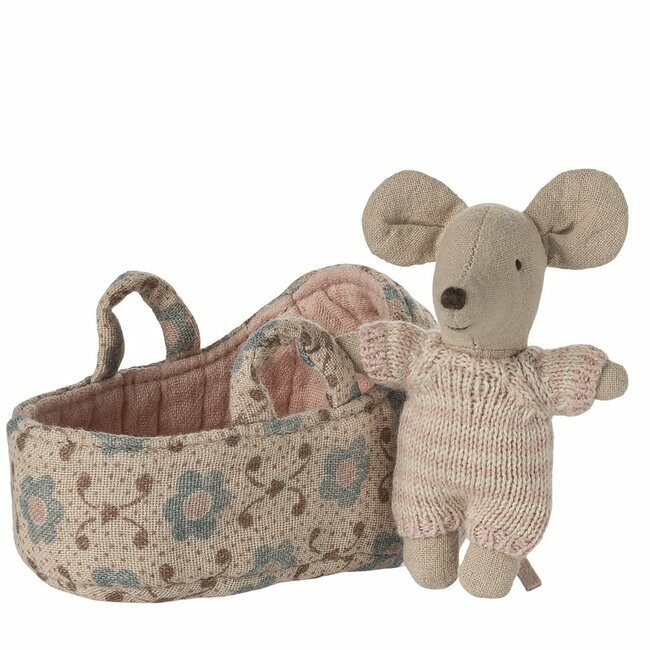 Bébé Souris dans son Couffin - Rose