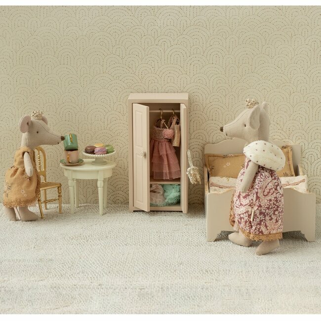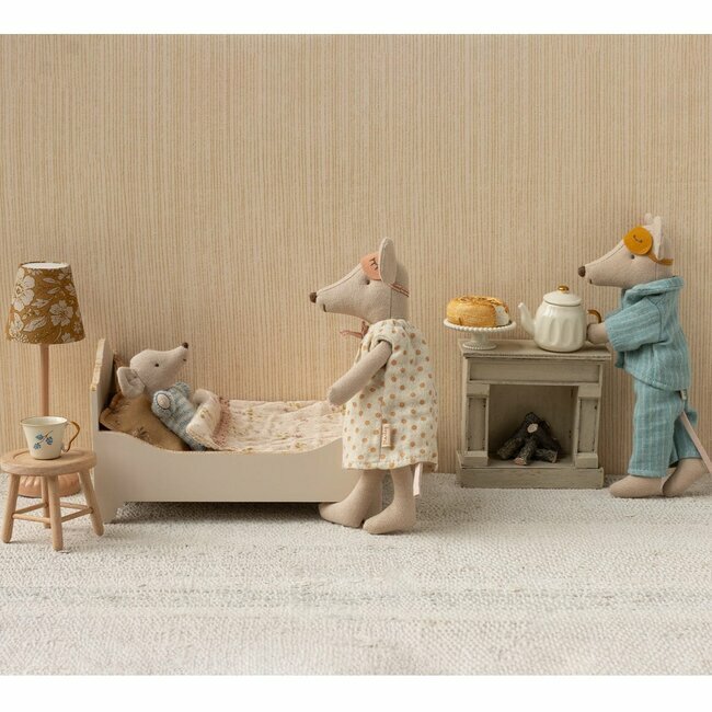 Un adorable mini lit en bois, idéal pour coucher les petites souris Maileg. Il est livré avec son magnifique ensemble de linge de lit en tissu fleuri. Deux souris peuvent aisément dormir côte à côte, il convient aux souris Grand(e)s soeurs/frères.